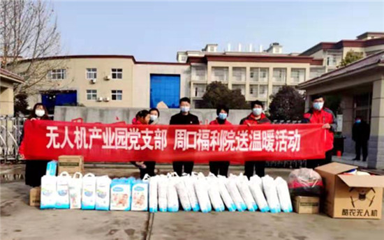 西華縣無(wú)人機(jī)產(chǎn)業(yè)園黨支部書(shū)記于天龍、縣“兩新”組織黨工委辦公室主任閆懷,帶領(lǐng)黨員、預(yù)備黨員、入黨積極分子,為周口市社會(huì)福利院的小朋友免費(fèi)送去購(gòu)買(mǎi)的尿不濕、洗衣液以及捐贈(zèng)的衣服等用品,讓小朋友們?cè)诩磳?lái)臨的春節(jié),感受到黨的關(guān)懷及節(jié)日的溫暖。周口市福利院齊院長(zhǎng)詳細(xì)介紹了福利院的基本情況及小朋友們的身體情況、生活狀況等,并對(duì)無(wú)人機(jī)產(chǎn)業(yè)園黨支部表示感謝。