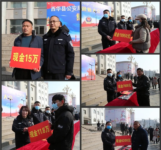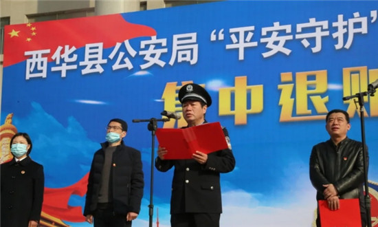 為進一步展示西華縣公安機關(guān)打擊犯罪的能力和保護人民群眾人身財產(chǎn)安全的決心,2月3日上午,西華縣公安局在女媧廣場舉行“平安守護”“三川利劍”專項行動集中退贓大會,依法將近期破獲的盜竊、詐騙等刑事案件中追回的贓款贓物全部返還給群眾。