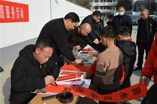 “寫的春聯(lián)太有意義了,別提多高興了,這是對(duì)我們最好的祝福?!爆F(xiàn)場居民手捧“?!弊指吲d地說。