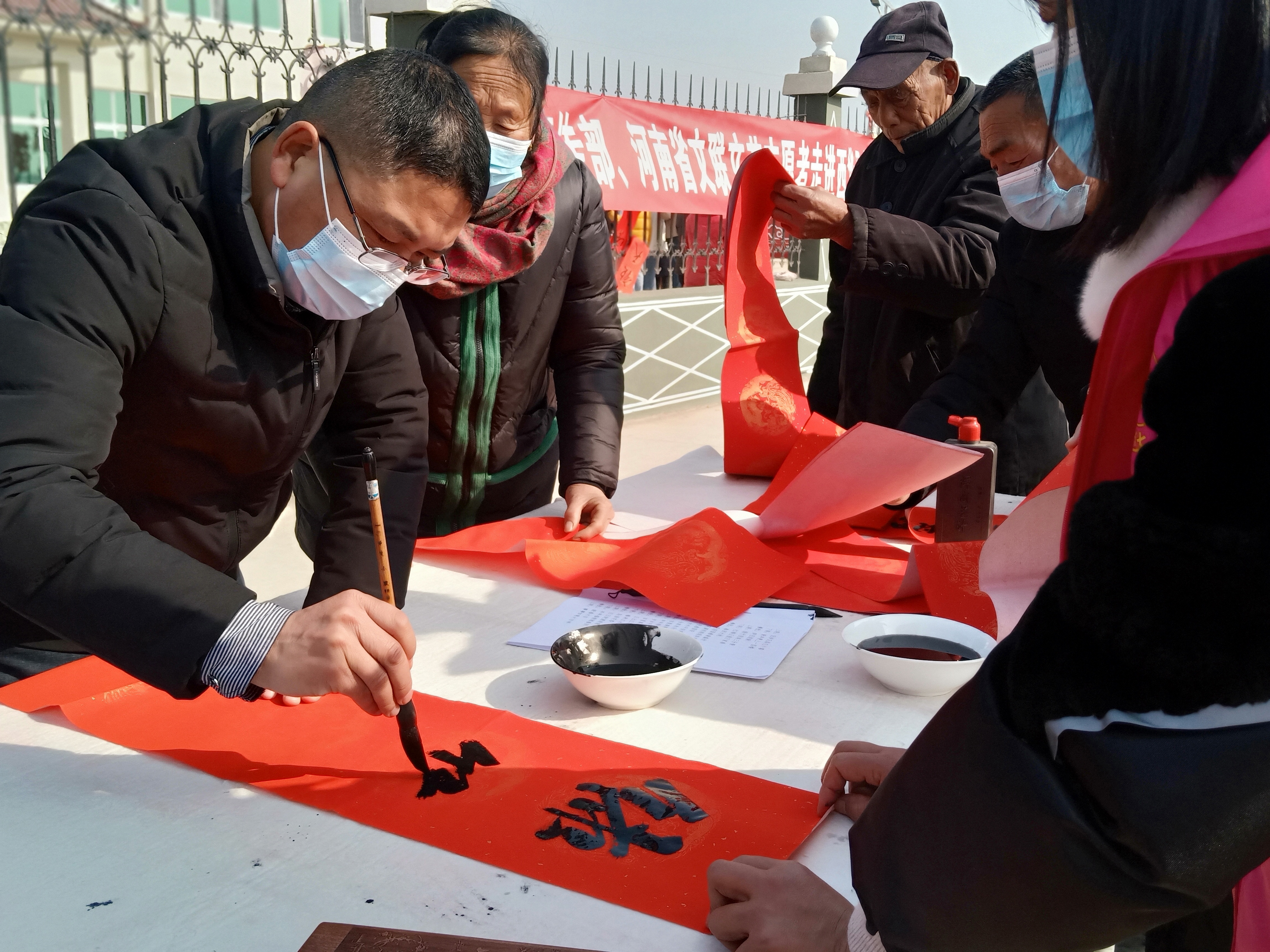 一大早,半截樓村新時代黨群服務(wù)中心樓前大院里人頭攢動、歡聲笑語、翰墨飄香。一邊是省文聯(lián)志愿者義寫春聯(lián)送福,一邊是文藝志愿者文藝培訓(xùn)。村民們喜領(lǐng)一副副散發(fā)著墨香的大紅春聯(lián),臉上洋溢著幸福喜悅的笑容。
