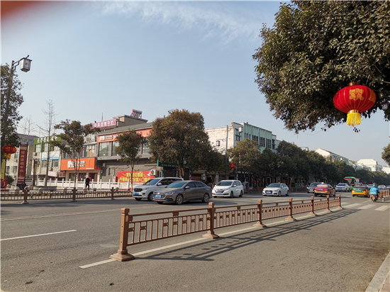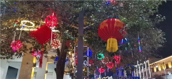 在縣政府附近,紅色的燈籠在傍晚剛剛亮起的路燈映襯下,更加的喜氣洋洋,盡顯熱鬧喜慶的年味,引得不少路過的市民拿出手機(jī)拍照留影。