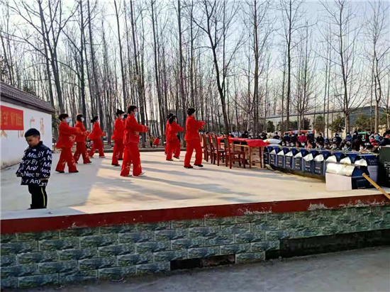活動現(xiàn)場,各村自編自演了小型多樣、群眾喜聞樂見的文化活動,用腰鼓表演、廣場舞、歌曲、戲曲、舞蹈等,展示人們的幸福生活。
