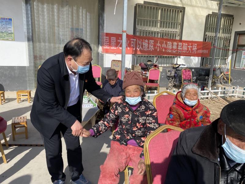 “非常感謝黨委政府、感謝愛心企業(yè)家,對我們特困老人的關(guān)愛。我們在這里穿的暖,吃的飽,雖沒有兒女,但我們過得比有兒女的還幸福呀!”在毛莊鎮(zhèn)小新村居村聯(lián)養(yǎng)點(diǎn),鄭大爺緊緊握著該鎮(zhèn)黨委書記田振的手說。陶母崗村的于發(fā)田老大爺共有兩個兒子,大學(xué)畢業(yè)后一個在北京上班,一個在邯鄲打工,因疫情影響不能回家陪老人過年。駐村第一書記應(yīng)建偉、支部書記王永福聽說后,先后兩次到于大爺家看望慰問,給他送去米、面、油和春聯(lián)等年貨。田大爺?shù)膬鹤佑趲涊x在電話中激動的對支部書記王永福說:“非常感謝毛莊鎮(zhèn)黨委政府、感謝村委會!”