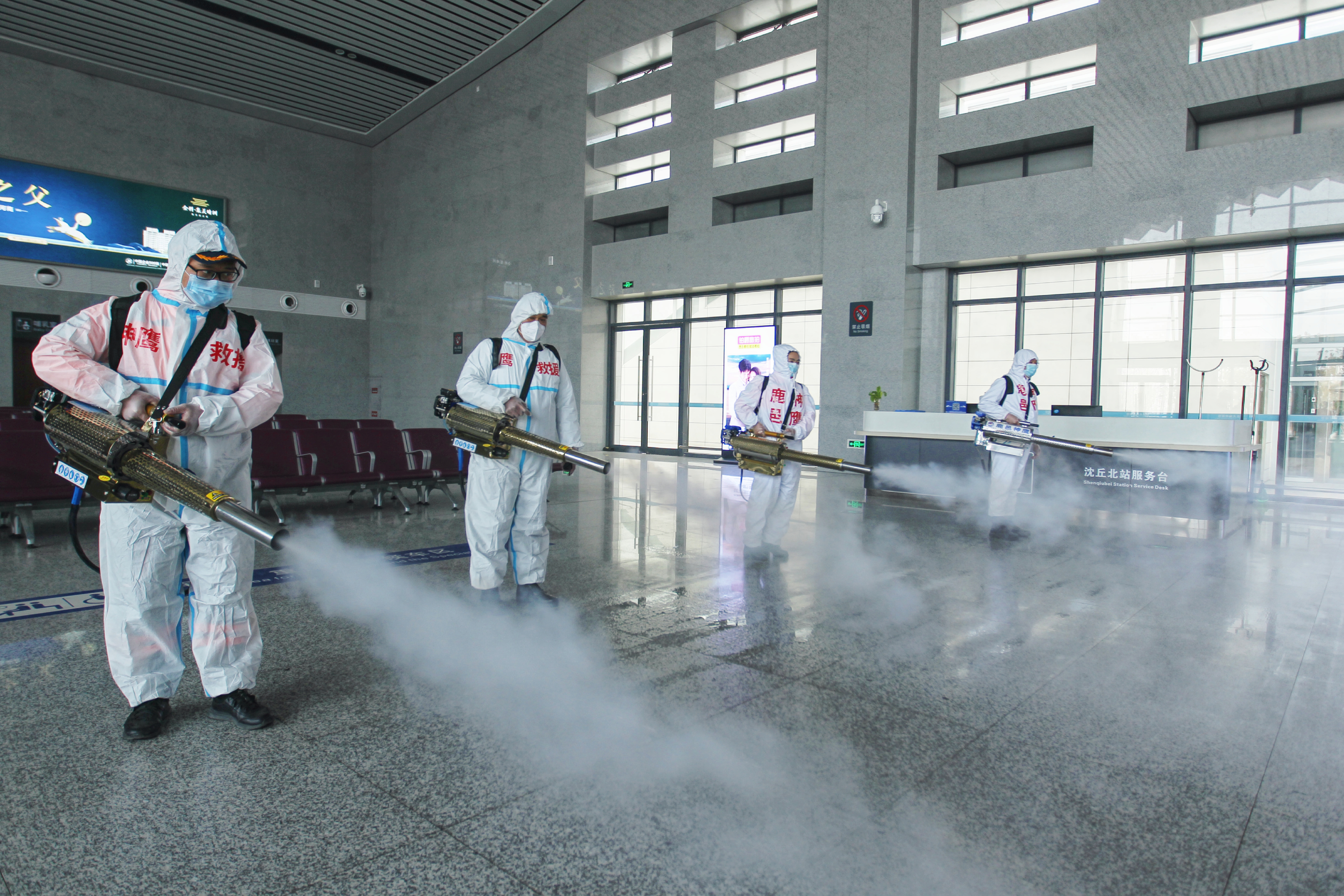 2月8日,沈丘北站邀請河南神鷹救援隊(duì),攜帶4臺大型脈沖彌霧機(jī),按照國家衛(wèi)生防疫消殺管理標(biāo)準(zhǔn)規(guī)范,對該站進(jìn)行全方位消殺工作。