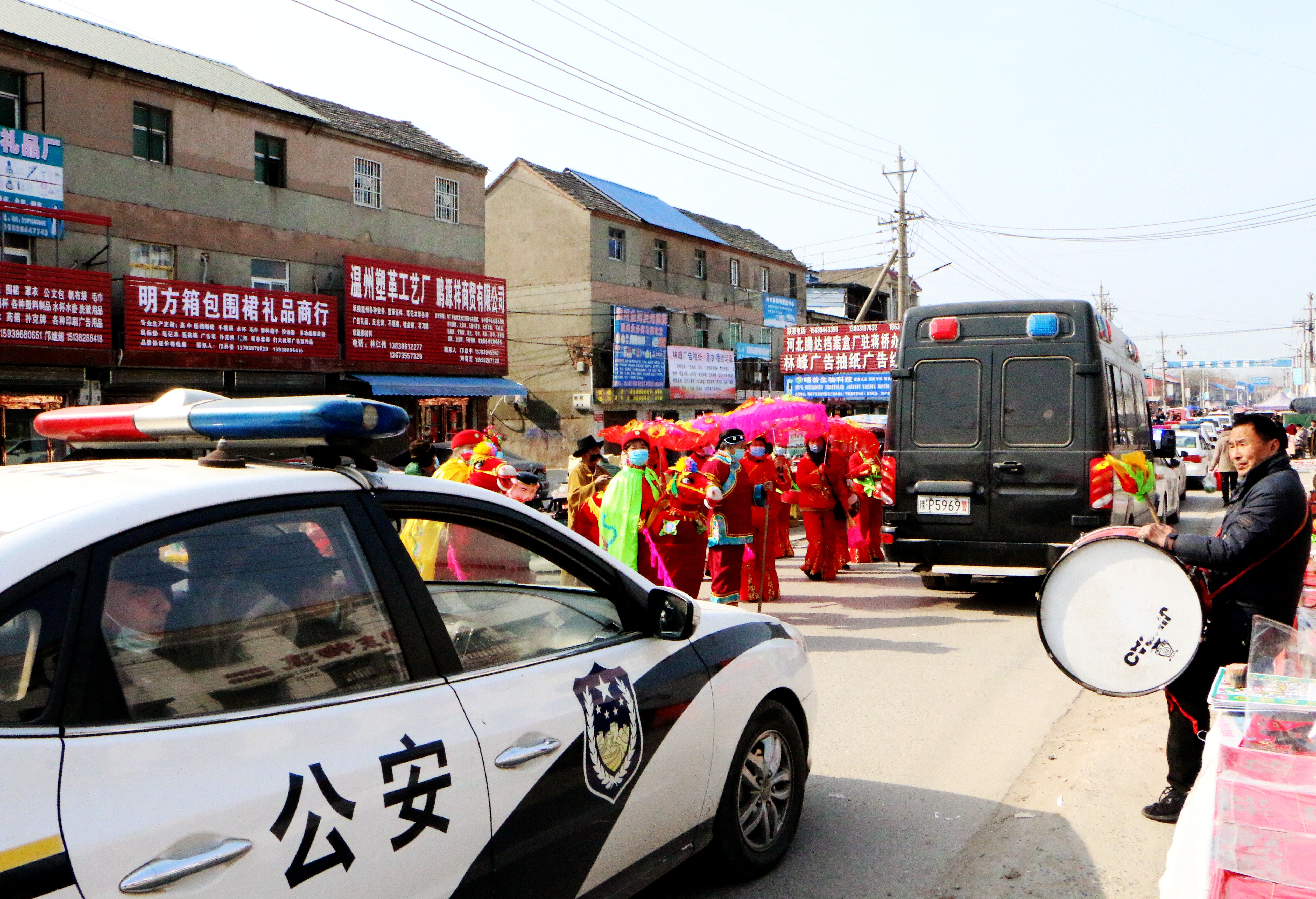 2月9日10時許,外出執(zhí)行抓捕任務(wù)凱旋的商水縣公安局刑偵民警,乘著警車帶領(lǐng)押運車隊途經(jīng)該縣胡吉鎮(zhèn)大街時,當?shù)厝罕娗描尨蚬臍g迎勇士凱旋。圖為群眾歡迎場景。