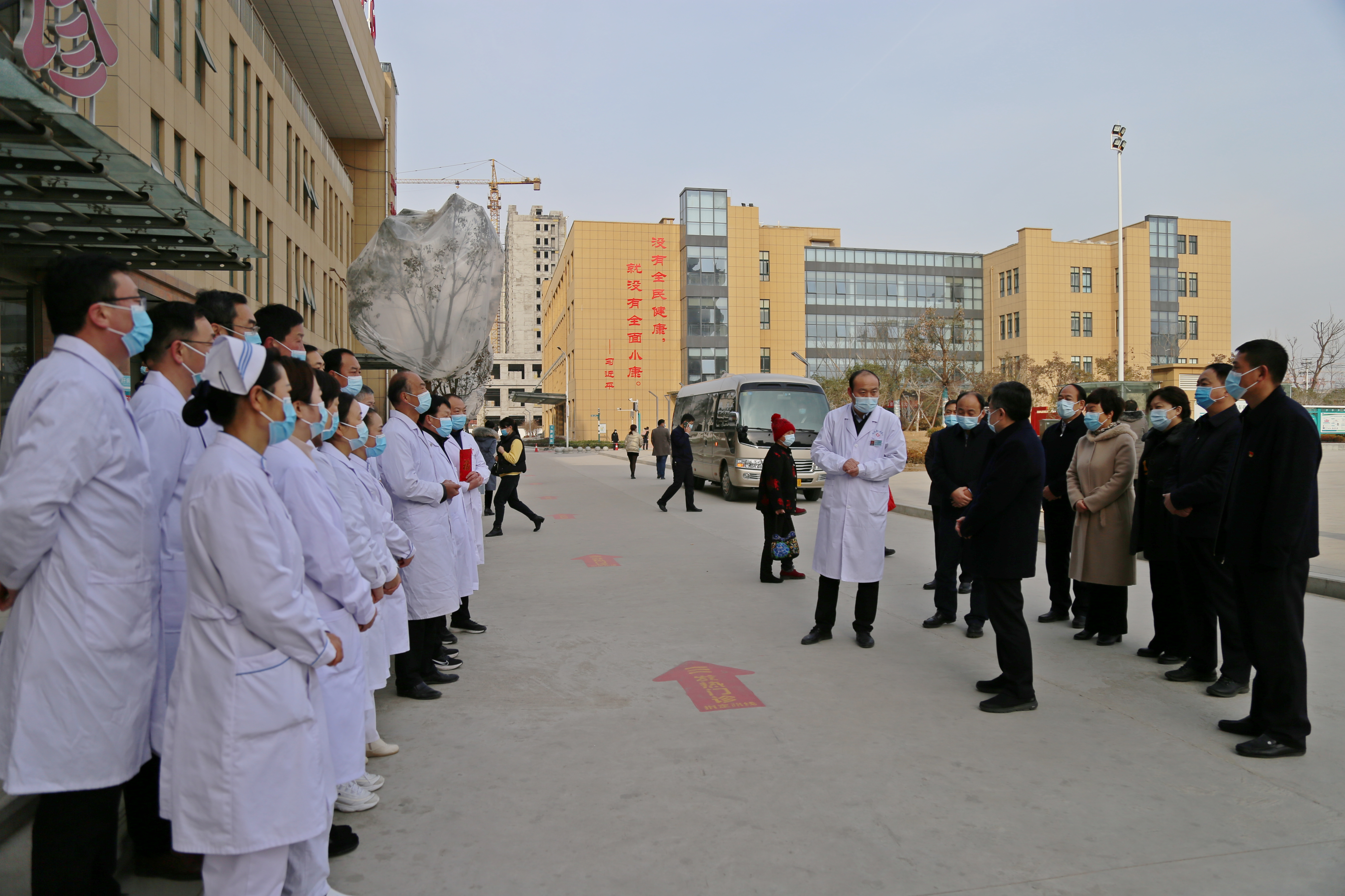 白衣執(zhí)甲、逆行出征。在縣人民醫(yī)院,皇甫立新、劉國慶代表縣四個班子和全縣人民向堅守在一線的醫(yī)護人員表示衷心感謝并致以崇高敬意,祝大家新年快樂、闔家歡樂?;矢α⑿抡f,2020年,是極不平凡的一年,自新冠肺炎疫情發(fā)生以來,全縣廣大醫(yī)護人員舍小家顧大家,義無反顧的沖鋒在救治一線,不畏困難和危險,連續(xù)作戰(zhàn),為保障人民生命安全和身體健康作出了重要貢獻(xiàn)。希望全縣醫(yī)護人員繼續(xù)發(fā)揚人道主義精神和救援精神,提高救治水平,扎實做好冬春季疫情防控工作,并再三叮囑一線醫(yī)務(wù)人員一定要合理安排時間,注意勞逸結(jié)合,做好自身防護。同時叮囑醫(yī)院負(fù)責(zé)人要做好醫(yī)護人員的后勤保障工作,確保大家無后顧之后,全身心投入到工作去中。