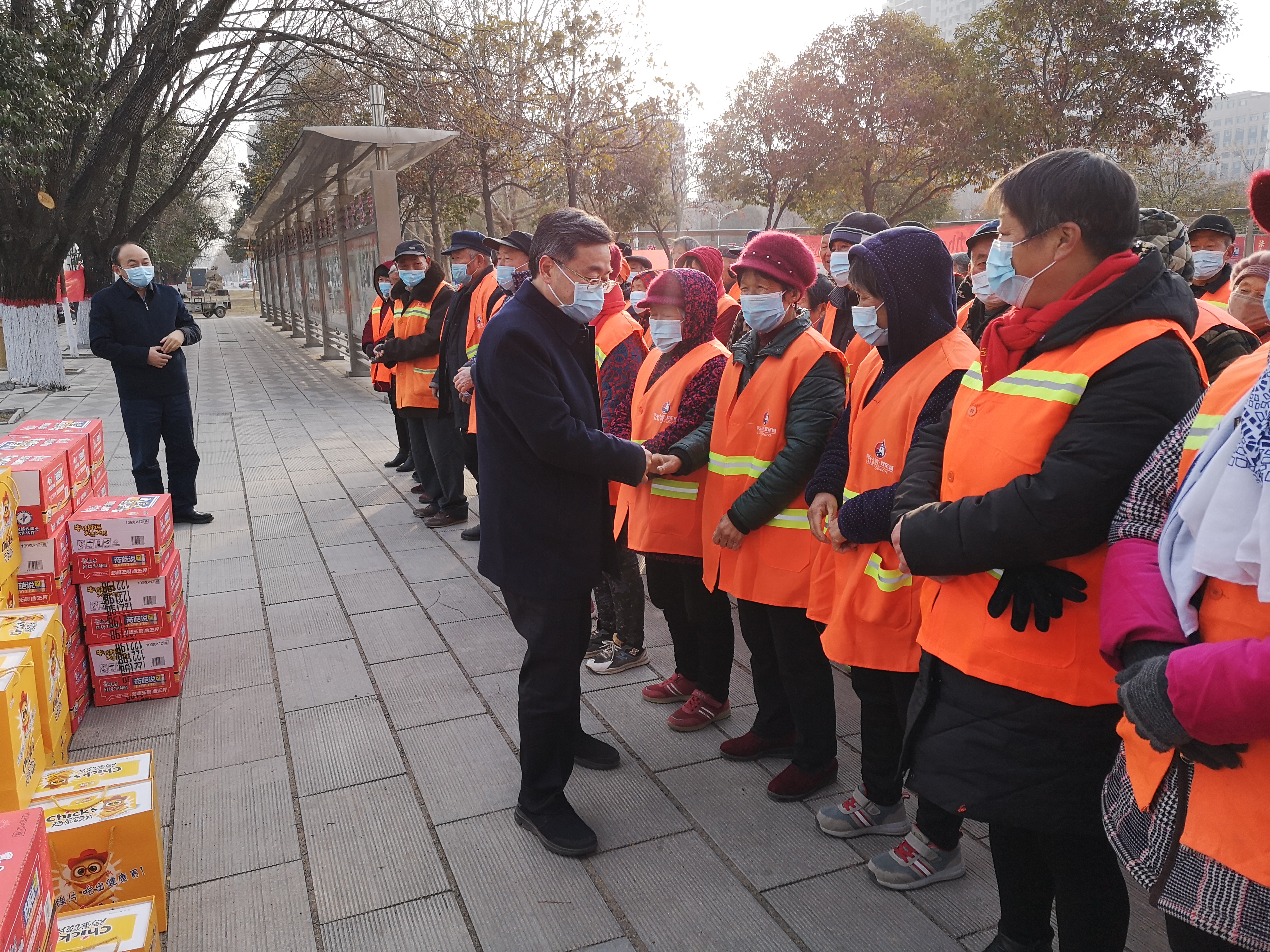 在行政新區(qū)全民健身廣場,皇甫立新、劉國慶同環(huán)衛(wèi)工人們一一握手,并代表縣四個班子向堅守一線的環(huán)衛(wèi)工人致以新春的祝福,對他們在過去一年里付出的辛勤勞動表示衷心感謝。皇甫立新說,一年來,環(huán)衛(wèi)工人們起早貪黑、兢兢業(yè)業(yè),為改善居民生活環(huán)境和提升城市形象付出很多心血和汗水,取得了良好效果,城區(qū)環(huán)境和城市面貌有了很大改善,得到了社會各界的一致好評,希望大家繼續(xù)發(fā)揚愛崗敬業(yè)、無私奉獻(xiàn)的精神,把縣城衛(wèi)生打掃的更加干凈、整潔,為全縣人民歡度春節(jié)創(chuàng)造一個干凈舒適愉快的環(huán)境。