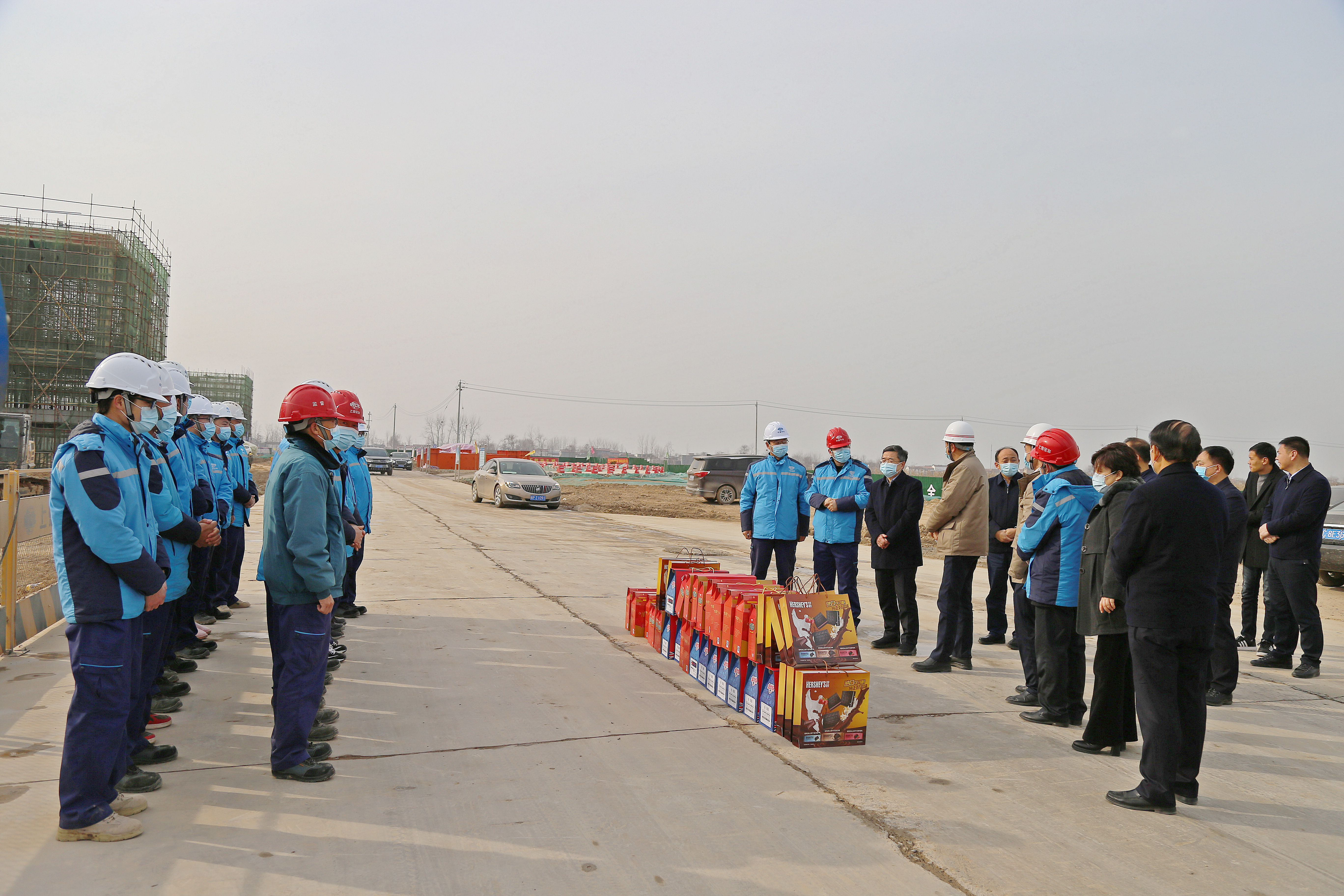 在安鋼產(chǎn)能置換項目部和一期一步施工現(xiàn)場,皇甫立新、劉國慶代表縣四個班子和全縣人民向奮戰(zhàn)在安鋼產(chǎn)能置換一線的建設(shè)者們表示感謝,并致以新春的祝福?;矢α⑿抡f,安鋼產(chǎn)能置換項目自落戶沈丘以來,項目推進如此之快,可謂是日新月異,氣勢恢宏,振奮人心,這既離不開省委省政府、市委市政府的關(guān)心支持,更離不開建設(shè)者們的辛苦付出。希望廣大建設(shè)者能夠繼續(xù)發(fā)揚不怕苦不怕累的敬業(yè)精神,以時不我待的決心,全面加快項目建設(shè),確保如期實現(xiàn)2021年5月份建成出鋼的施工目標(biāo),繼續(xù)為周口、沈丘經(jīng)濟社會高質(zhì)量發(fā)展作出新的貢獻(xiàn)。