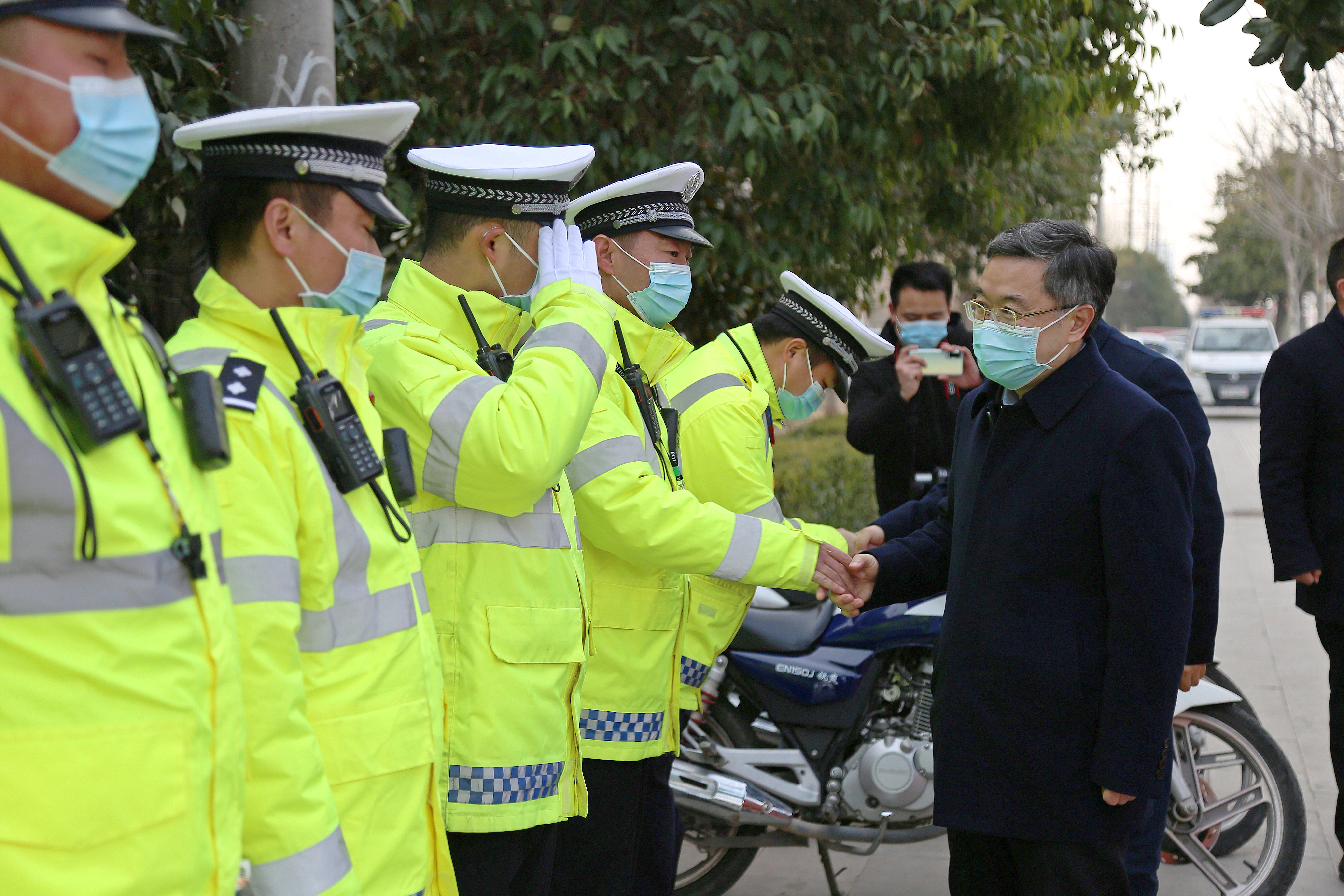 在縣交警大隊城區(qū)新區(qū)中隊五岔路口執(zhí)勤點,皇甫立新、劉國慶同正在執(zhí)勤的交通民警一一握手,并代表縣四個班子向交警大隊全體民警、協(xié)警一年來付出的努力和辛苦表示感謝和問候,囑咐他們要注意安全,保重身體。在詳細(xì)聽取春節(jié)期間治堵保暢工作情況匯報后,皇甫立新對交警大隊全體民警和輔警在春節(jié)期間舍小家為大家,始終堅守崗位保暢通的工作態(tài)度,以及無私奉獻(xiàn)、任勞任怨的工作作風(fēng)給予高度評價。并希望大家在春節(jié)期間,繼續(xù)發(fā)揚吃苦耐勞的精神,科學(xué)做好道路安全保障工作,克服車多人多等困難,確保春節(jié)期間全縣道路交通安全暢通,讓全縣人民愉快度過一個平安、祥和的春節(jié)。同時要求縣交警大隊要進一步做好執(zhí)勤民警后勤保障及防寒保暖工作,加強人員輪換上崗,切實保障公安交警切身利益,解決他們的后顧之憂。