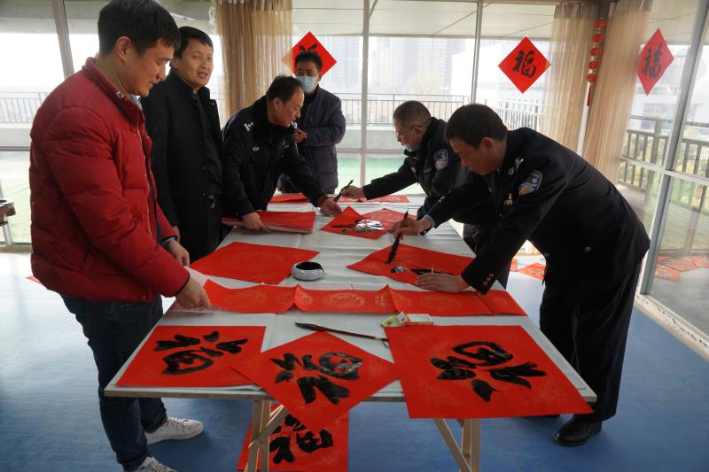 金牛賀歲來祥瑞,翰墨飄香迎新春。為弘揚中華傳統(tǒng)文化,落實“從優(yōu)待警”舉措,傳遞市局黨委的親切慰問和關心關懷,豐富警營文化生活,營造歡樂祥和的節(jié)日氛圍,2月9日,項城市公安局在三樓大廳開展書贈春聯(lián)活動,孫沄、閆永紅等5名警營書法家及16名蓮溪書院師生揮毫潑墨,現場為民警、輔警及工作人員義寫春聯(lián)、福字2000余套,受到了廣大民警、輔警的熱烈歡迎和充分好評。