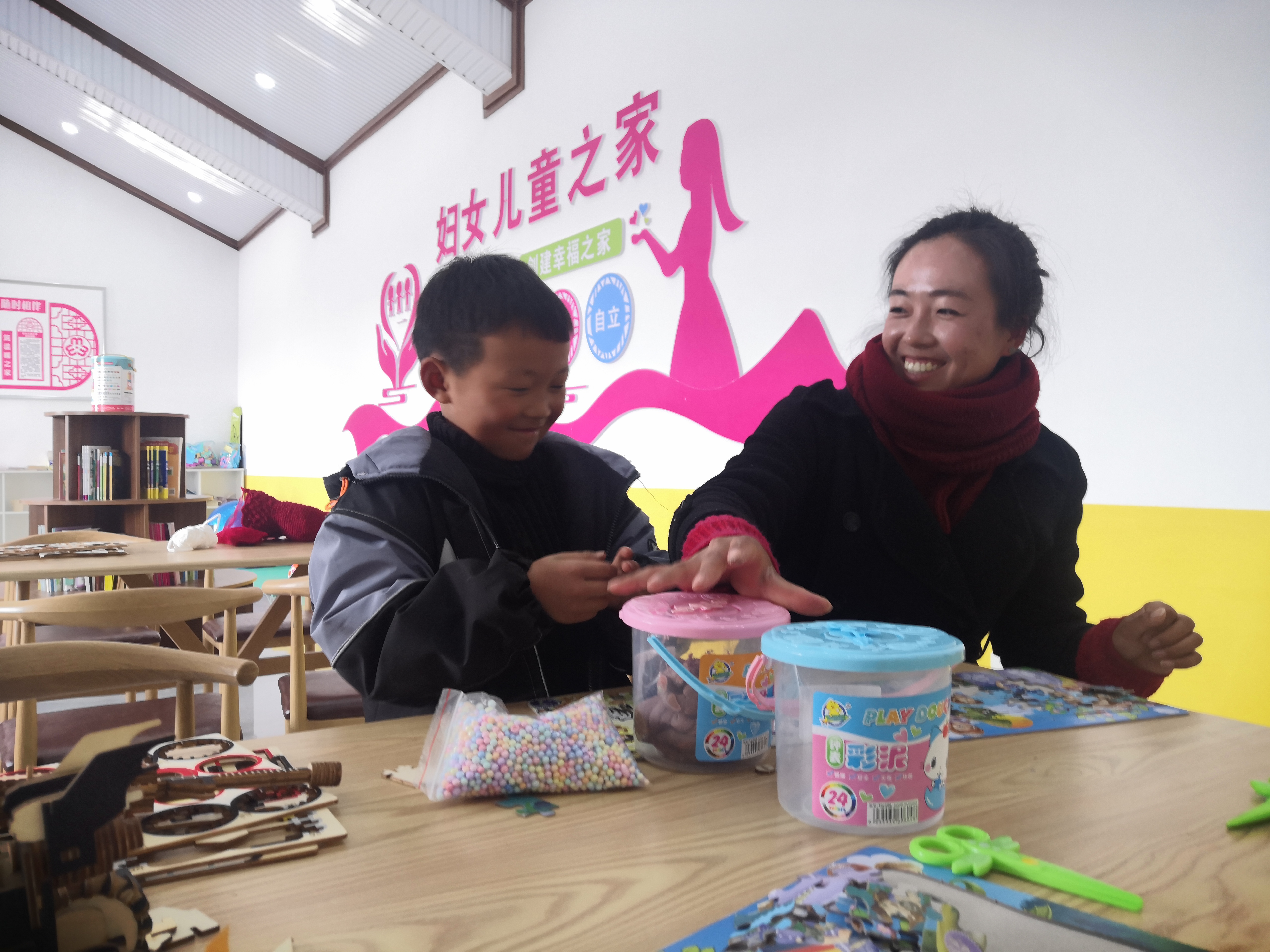 “婦女兒童之家”不僅給孩子們提供了一個充滿童趣的場所,也讓媽媽們有了一個學習、交流、充電的陣地。在這里,她們可以利用閑暇時光做手工,通過網(wǎng)絡(luò)銷售她們的手工藝術(shù)品,帶娃、顧家、掙錢、學習四不誤。