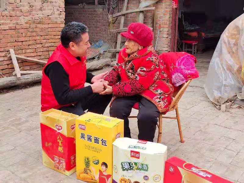 按照中國(guó)民間傳統(tǒng)習(xí)俗,新春伊始,人們都要穿戴新衣新帽走親訪友,拜年送祝福。2月12日,農(nóng)歷正月初一一大早,遜母口鎮(zhèn)心連心雷鋒服務(wù)隊(duì)隊(duì)長(zhǎng)張新靜帶領(lǐng)志愿者張建設(shè)、劉賀敬、馮茹愿、賈衛(wèi)蒙、馮柯馨、歐樣等人就敲開了106歲的張占花家門。當(dāng)日,他們帶著核桃牛奶、面包、八寶粥,專門來(lái)為老人來(lái)拜年。 “新靜他們來(lái)了……”一聽聲音,張占花老人就猜到了是誰(shuí)。經(jīng)過(guò)去年一年的幫扶,張新靜等人已經(jīng)與照顧占花老人成了“熟人”?!斑@些孩子們可沒少幫俺,又送物又幫俺打掃庭院”??吹街驹刚邆兊牡絹?lái),張占花老人的臉上掛滿笑容。