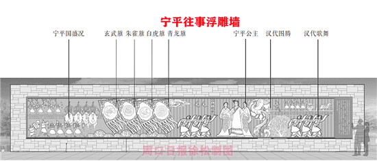 府東路北頭與鄲淮路交叉口占地近30畝的文化廣場(chǎng)是調(diào)水渠“三段銜一園”景觀中核心形象段之一。除了綠樹、百花、清流、步道,以及音樂燈光噴泉、西側(cè)建設(shè)有接近生態(tài)自然的親水觀光平臺(tái)之外,這里的5塊浮雕文化墻值得我們深入了解。這組浮雕墻讓古老與現(xiàn)代在這里交相輝映,昭示著無論社會(huì)和科技如何進(jìn)步,源遠(yuǎn)流長(zhǎng)的傳統(tǒng)文化永遠(yuǎn)是鄲城人的情感歸宿和精神家園。文化廣場(chǎng)的園路、綠地、建筑等都以鄲城歷史文脈為中心,將現(xiàn)代生活元素與歷史文化元素有機(jī)結(jié)合,營(yíng)造了一個(gè)文化與生態(tài)自然融合的新地標(biāo)。