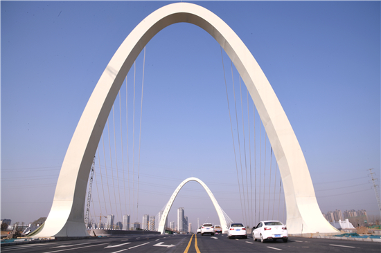 遠遠望去,松花江路跨幸福河大橋宛如大鵬展翅欲飛。據(jù)了解,大橋設(shè)計寓意為“沖出云霄”,橋體以現(xiàn)代無脊索斜拉橋作為裝飾構(gòu)件,橋梁主塔+拉索造型恰如振翅高飛的雄鷹,有著“大鵬一日同風起,扶搖直上九萬里”的象征意義,表示周口市正蓄勢待發(fā),抓住機遇,一飛沖天,加入全國城市發(fā)展的快車道。③5