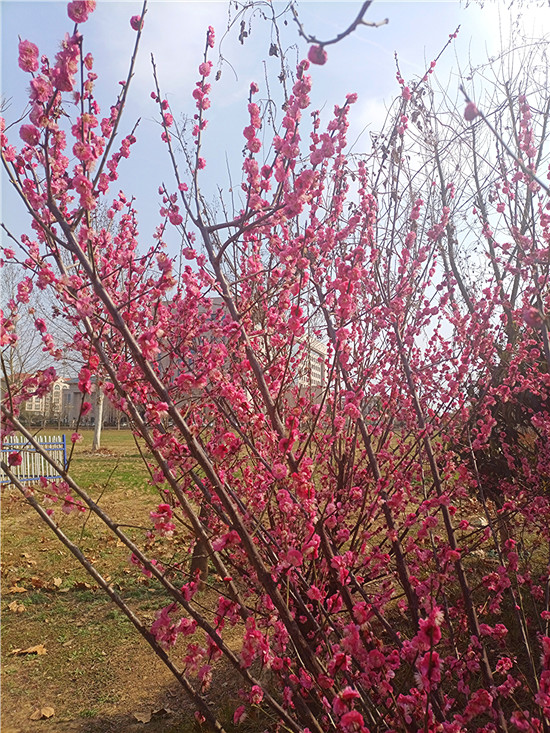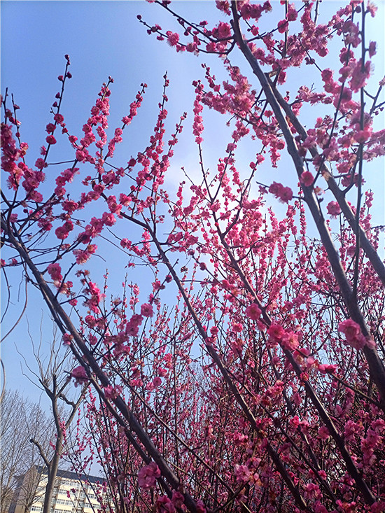 梅花,自古以來(lái)就是文人墨客筆下的??汀S性?shī)云:“春風(fēng)試手先梅蕊,頩姿冷艷明沙水?!泵坊軌蛄韬㈤_(kāi),兼具冷艷和嬌媚,被譽(yù)為花中四君子之首。近日,我市天氣晴好,公園內(nèi)、道路旁,一樹(shù)樹(shù)梅花開(kāi)的熱熱鬧鬧、密密匝匝,令人感受到濃濃的春意和無(wú)盡的美好。