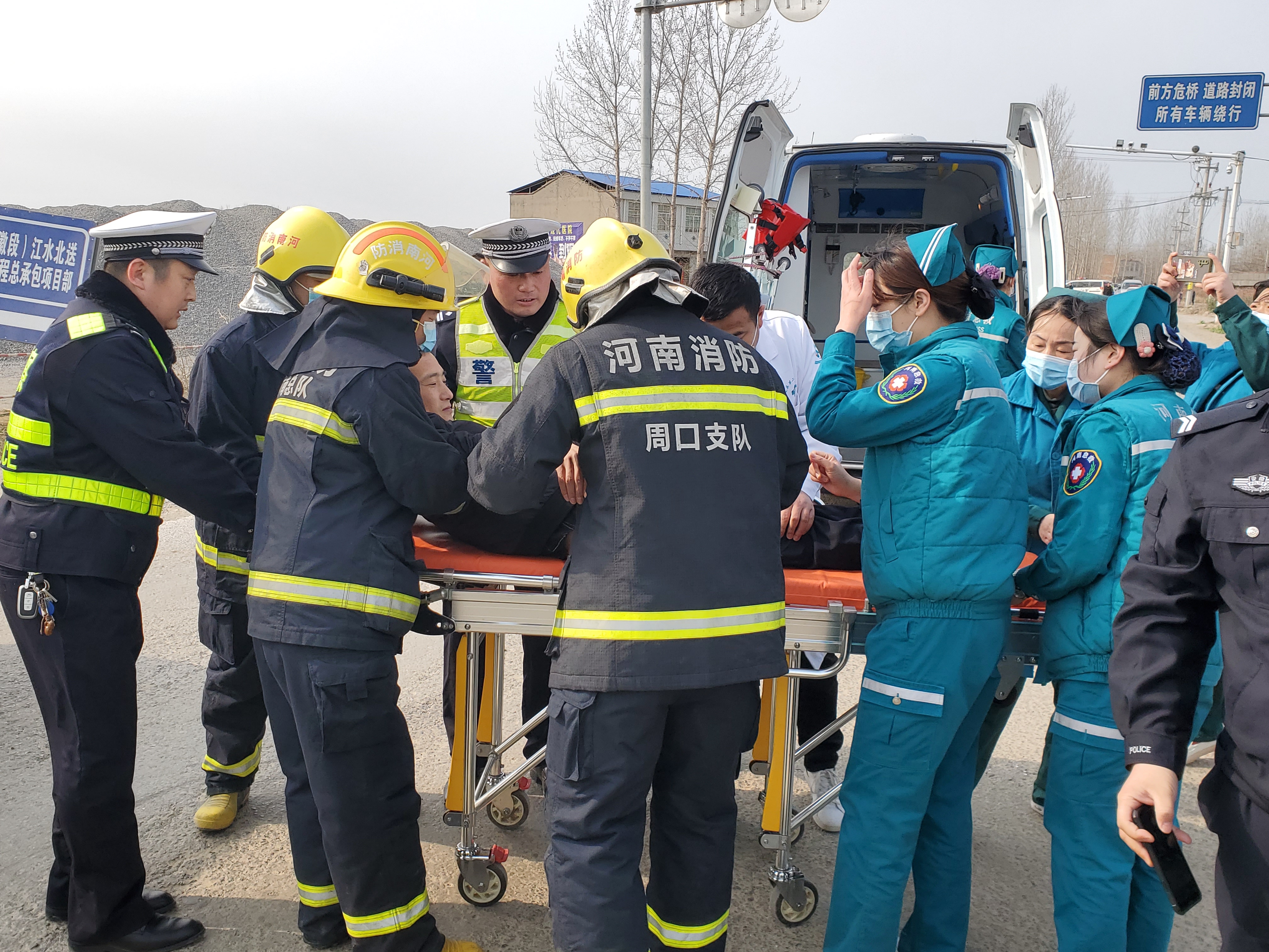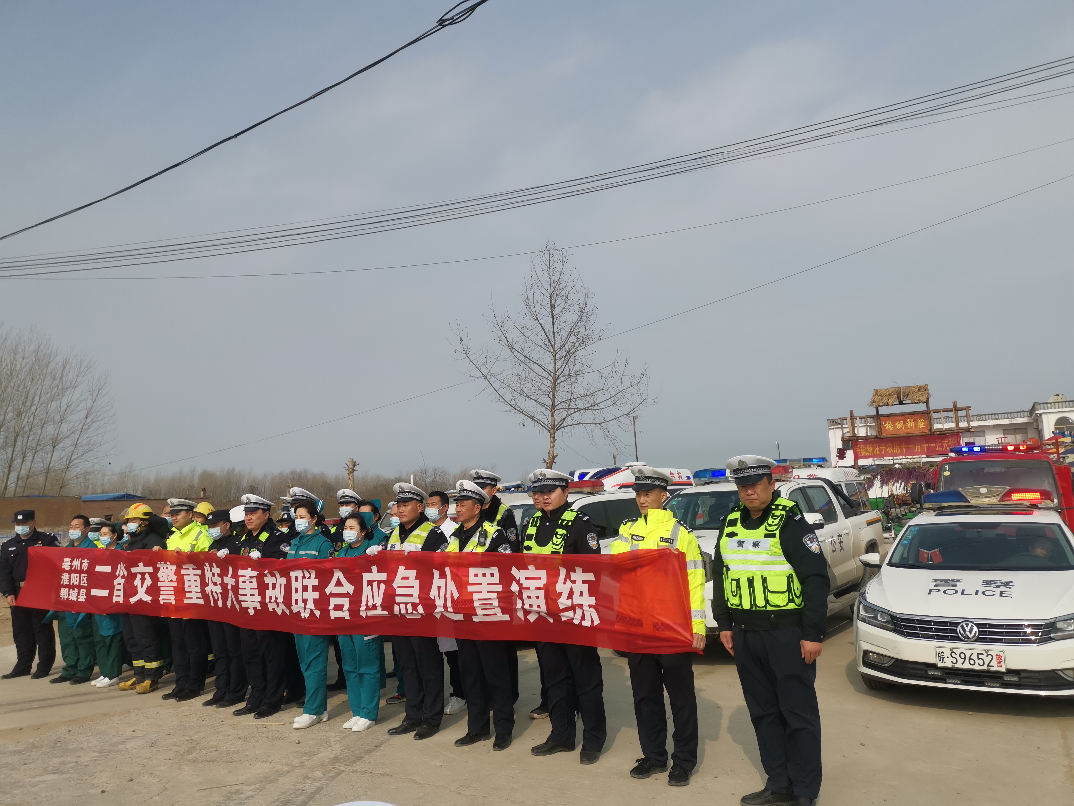 為提高冬季惡劣天氣條件下突發(fā)道路交通事故應急處置能力、各部門之間的協(xié)同作戰(zhàn)以及應急指揮系統(tǒng)的組織協(xié)調能力,最大限度減少因交通事故導致的人員傷亡,確保人民群眾生命財產(chǎn)安全,鄲城縣公安交通警察大隊聯(lián)合淮陽區(qū)公安交通警察大隊和安徽省亳州市公安交通警察支隊四大隊雙溝中隊,及鄲城縣公安局南豐鎮(zhèn)派出所,應急管理、鄲城縣麗清醫(yī)院,鄲城縣中心醫(yī)院,道路基金救助辦公室等部門開展了道路交通事故快速發(fā)現(xiàn)、及時救援、有效救治、妥善救助的“四位一體”聯(lián)動型應急處置演練活動。