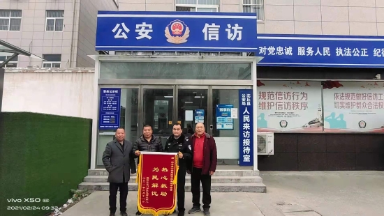 2月24日上午,淮陽(yáng)區(qū)豆門(mén)鄉(xiāng)村民孫學(xué)海及家人來(lái)到沈丘縣公安局信訪接待大廳,將一面上書(shū)“熱心救助、為民解憂”的錦旗送到控申科領(lǐng)導(dǎo)手中,激動(dòng)的說(shuō):我母親今年己是91歲了,前些天來(lái)沈丘走親戚迷了路,幸虧被你們民警發(fā)現(xiàn),要不然真不知道會(huì)咋樣,衷心感謝控申科王培華警官的熱心救助。