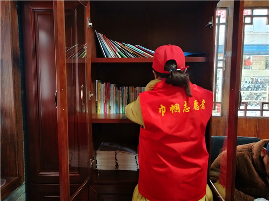 上午9點,天空中偶有零星小雨,市民驛站里卻有幾位市民正在這里讀書,古色古香的書柜,整齊地擺放著各類書籍,文學(xué)、百科、養(yǎng)生書籍俱全。周口市慈孝文化促進(jìn)會的志愿者每天都在值班,隨時打掃衛(wèi)生,為市民提供力所能及的幫助。