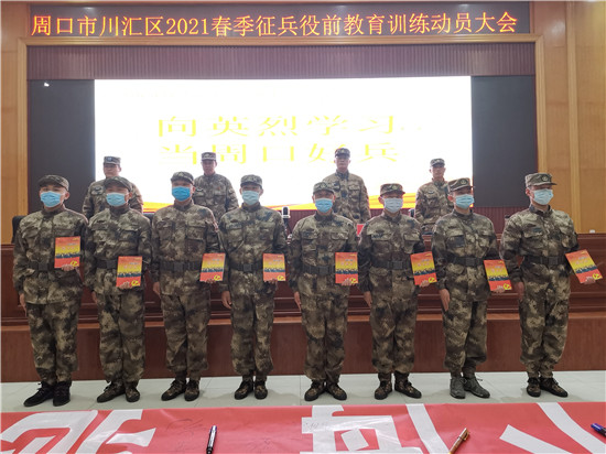 在當(dāng)天的動(dòng)員會(huì)上,陳繼芳作了動(dòng)員講話,新兵代表和教練員代表分別作了發(fā)言,并舉行了“向英烈學(xué)習(xí) 當(dāng)周口好兵”集體宣誓、贈(zèng)送書籍《強(qiáng)軍路上周口兵》及簽名儀式。③5