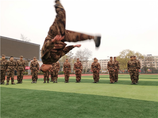 “我自幼習(xí)武,自愿當(dāng)兵,我申請到祖國最邊遠(yuǎn)的地方戍守邊關(guān)……”2月25日下午,在商水縣預(yù)訂新兵役前訓(xùn)練現(xiàn)場,面對前來檢查工作的周口市征兵辦副主任、周口軍分區(qū)動員處處長付志遠(yuǎn),“準(zhǔn)新兵” 省國振說出了自己的入伍決心,并現(xiàn)場表演了一套“少林武功”。