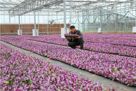 油畫(huà)吊蘭培植是宋狄樓行政村的特色農(nóng)產(chǎn)品扶貧項(xiàng)目。2019年,煙草局扶貧工作隊(duì)協(xié)調(diào)多方資源,爭(zhēng)取資金150余萬(wàn)元,建設(shè)起2200平方米的全自動(dòng)化玻璃溫室大棚,并引進(jìn)了油畫(huà)吊蘭種植項(xiàng)目?!斑@座大棚自動(dòng)化程度高,非常適宜種植多肉植物,年出苗8萬(wàn)株以上,單株利潤(rùn)在4-5元,每年創(chuàng)造收入近40萬(wàn)元,提供就業(yè)崗位14個(gè)。下一步我將豐富栽培品種,加強(qiáng)與銷(xiāo)售地的對(duì)接,助力宋狄樓美麗鄉(xiāng)村建設(shè),為地方經(jīng)濟(jì)社會(huì)發(fā)展做出應(yīng)有的貢獻(xiàn)?!睂I(yè)種植戶朱永杰談起今后的打算也是溢于言表。