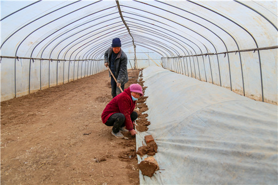 “我們宋狄樓村原先就有人種黑皮冬瓜,以前不懂技術(shù),也沒(méi)形成規(guī)模,冬瓜育苗、生長(zhǎng)都是靠天吃飯,碰上不好的光景,只能眼睜睜地看著冬瓜秧病死,爛在地里一點(diǎn)辦法也沒(méi)有,大半年的功夫全浪費(fèi)了,很多人也都不愿意種了,只有十幾戶每年種一點(diǎn),收獲的季節(jié)到處跑著賣(mài),根本形不成規(guī)模”老胡一邊說(shuō)著,一邊和老伴鏟土壓棚,“現(xiàn)在不一樣了,駐村第一書(shū)記李樹(shù)行來(lái)了之后,頭一年就鼓勵(lì)我們冬瓜種植,讓我們村有種植經(jīng)驗(yàn)的農(nóng)戶集中起來(lái)一塊交流育苗、生長(zhǎng)管理經(jīng)驗(yàn),還請(qǐng)來(lái)了縣里農(nóng)業(yè)局的專家進(jìn)行專門(mén)指導(dǎo),給我們免費(fèi)提供種苗,免費(fèi)投了農(nóng)業(yè)保險(xiǎn),一下子把大家的勁頭提上來(lái)。2015年我種了3畝,一畝能掙七八千,還領(lǐng)了3750塊錢(qián)的補(bǔ)貼,看著種冬瓜有錢(qián)賺,村里種冬瓜的人也逐漸多了起來(lái),現(xiàn)在種植10畝以上的就有一百多戶,賣(mài)冬瓜也不發(fā)愁了,村東頭就有收購(gòu)市場(chǎng),也不用來(lái)回跑了,價(jià)錢(qián)給的也不低?!痹?jié)前后正是冬瓜育苗的關(guān)鍵期,胡永祥兩口身上沾滿泥土,雖然累在身上卻甜在心里。