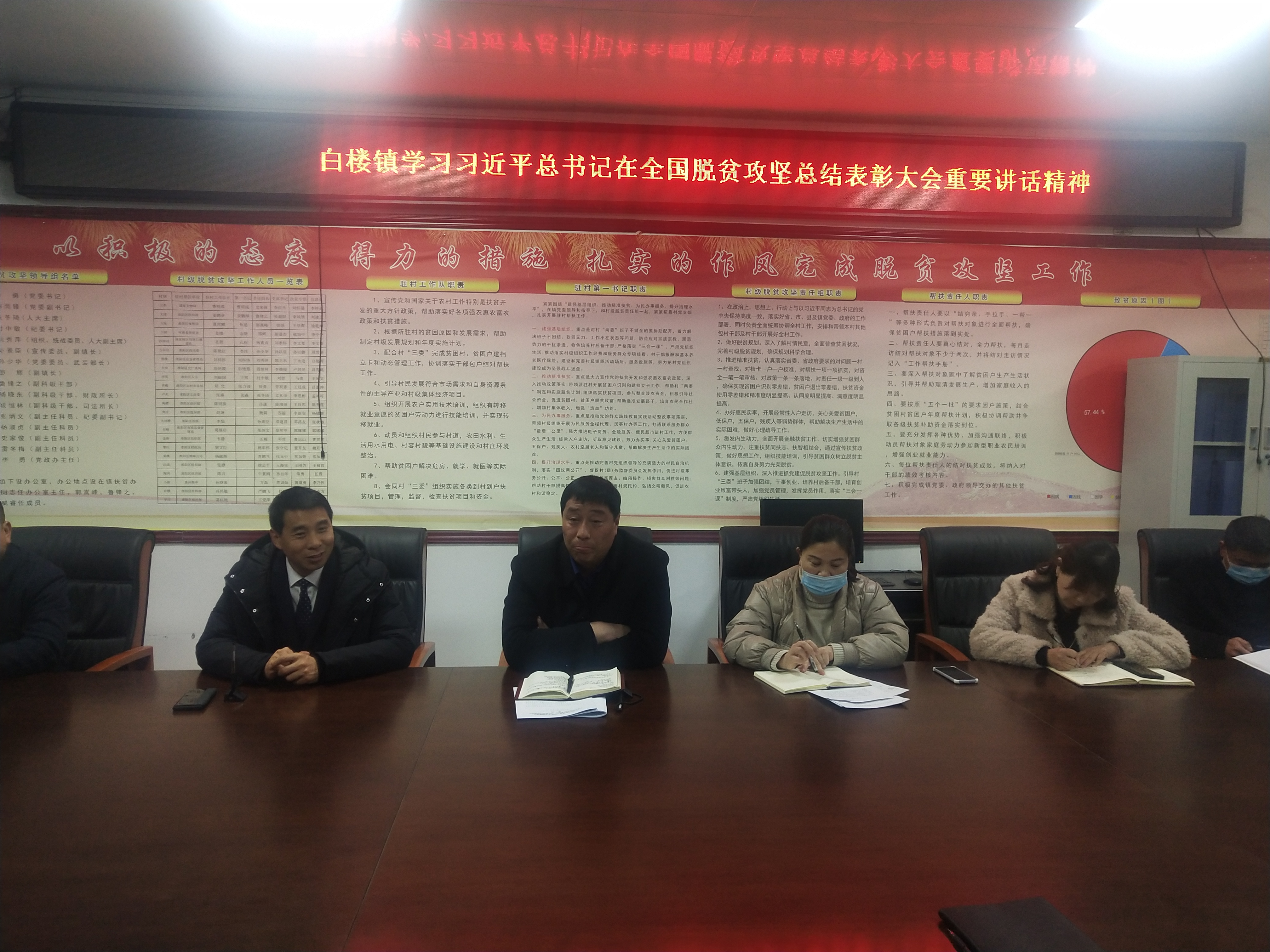 從北京回來(lái)的徐勇向白樓鎮(zhèn)黨員干部傳達(dá)了習(xí)近平總書記在全國(guó)脫貧攻堅(jiān)總結(jié)表彰大會(huì)上的講話精神,并詳細(xì)講述了自己從接到通知到集體赴京;從和習(xí)總書記集體合影到表彰大會(huì)現(xiàn)場(chǎng)聆聽講話的全過(guò)程。
