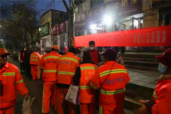 當日早上5時,在愛心粥屋里,示范區(qū)分局的志愿者們穿著紅馬甲,戴上口罩,立即進入忙碌狀態(tài),大家既分工明確又相互配合,現(xiàn)場井然有序。他們?yōu)榄h(huán)衛(wèi)工人盛飯端菜,拿雞蛋饅頭,動作迅速,熱情周到,有條不紊,個個忙得不亦樂乎。在這個清冷的早晨,因為有了熱氣騰騰的飯菜和志愿者忙碌的身影,環(huán)衛(wèi)工人開心地笑容,感受到濃濃暖意。