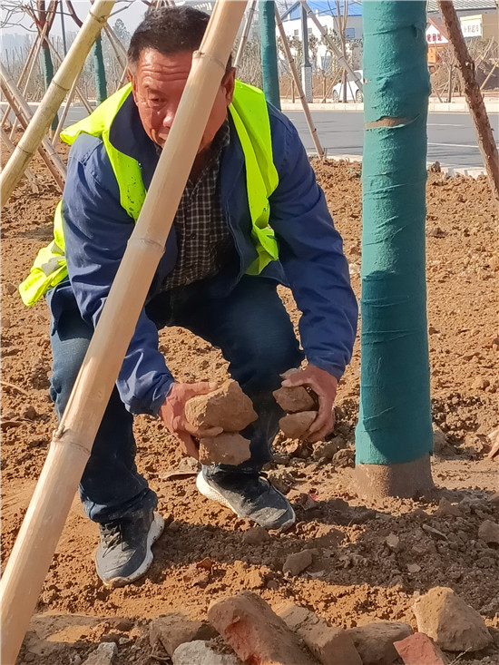 中州大道太清路至周口野生動(dòng)物世界段主體工程基本完工,目前正在進(jìn)行輔助工程的施工。圖為3月4日,幾名工人正在進(jìn)行車(chē)道隔離帶和邊道景觀(guān)帶的平整綠化。③6