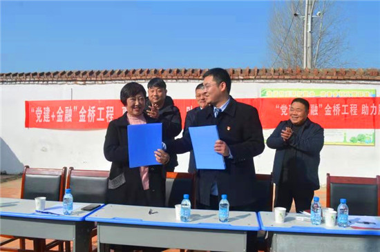 最后,鎮(zhèn)信用社和河灣村委共同簽訂協(xié)議,并授予河灣村“黨建+金融”金橋工程金融小組辦公室牌。