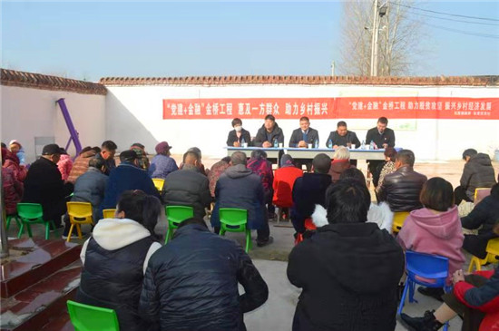 為認(rèn)真貫徹新時(shí)代黨的建設(shè)總要求,落實(shí)國(guó)家實(shí)施鄉(xiāng)村振興戰(zhàn)略,把踐行普惠金融與激發(fā)基層黨建活力進(jìn)一步結(jié)合起來,3月4日,西華縣東夏亭鎮(zhèn)聯(lián)合信用社在河灣行政村開展“黨建+金融”金橋工程活動(dòng)。該鎮(zhèn)人大主席王慶輝、西華縣信用聯(lián)社副主任閆杰、縣信用聯(lián)社信貸科科長(zhǎng)周飛、鎮(zhèn)信用社主任鄭廣成等出席活動(dòng)。