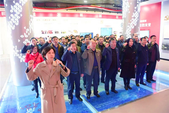 面對鮮紅的黨旗,梁麗高舉右臂,帶領(lǐng)黨員干部莊嚴(yán)宣誓,重溫入黨誓詞,讓大家再次感受作為黨員的責(zé)任感與使命感。