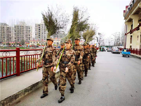 在鹿邑縣濱河公園附近,預(yù)定新兵手持鐵鍬、掃帚等工具,對道路兩旁的雜草、樹葉等進(jìn)行清掃。他們有的負(fù)責(zé)清掃堆積雜物,有的負(fù)責(zé)裝車,分工明確,忙得不亦樂乎。100多米長的道路不到30分鐘就清掃完畢,煥然一新?!翱吹侥銈兙陀幸环N親切感,這段路平時(shí)需要兩個(gè)小時(shí)才能清掃一遍,現(xiàn)在你們來了,真是幫了我們的大忙!”一位環(huán)衛(wèi)工人激動地說。 “馬上就要入伍了,臨走之前為家鄉(xiāng)做一些貢獻(xiàn),我覺得非常有意義!”來自趙村鄉(xiāng)的預(yù)定新兵丁永飛對記者說。
