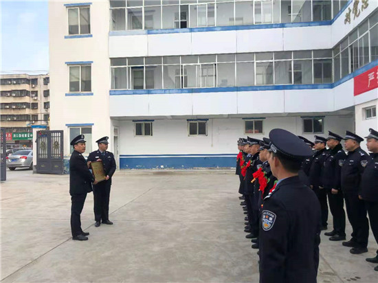 會(huì)前,荷花路派出所全所民輔警舉行了迎接“荷花路派出所公安工作先進(jìn)單位”榮譽(yù)牌匾儀式,該所全體民輔警向榮譽(yù)牌行注目禮。隨后,全體民輔警在辦公室主任關(guān)丹丹的帶領(lǐng)下,重溫入警誓詞。隨后,該所教導(dǎo)員黃宏偉宣讀了《荷花路派出所關(guān)于對(duì)在“三川利劍”專項(xiàng)行動(dòng)中成績(jī)突出的先進(jìn)中隊(duì)和先進(jìn)個(gè)人予以表彰的決定》,對(duì)先進(jìn)中隊(duì)和先進(jìn)民輔警頒發(fā)了荷花路派出所榮譽(yù)證書(shū)和獎(jiǎng)品,大家與優(yōu)秀民輔警集體合影留念。