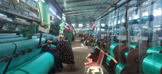 3月5日,記者走進(jìn)位于商水縣漁網(wǎng)生產(chǎn)工業(yè)園區(qū)的商水縣匯樂漁網(wǎng)有限公司,只見廠房內(nèi)數(shù)十臺(tái)機(jī)器正加班趕工,工人們則在熟練的接線織網(wǎng),一捆捆已經(jīng)編織好的網(wǎng)布正在打包裝車,一片繁忙的景象。
