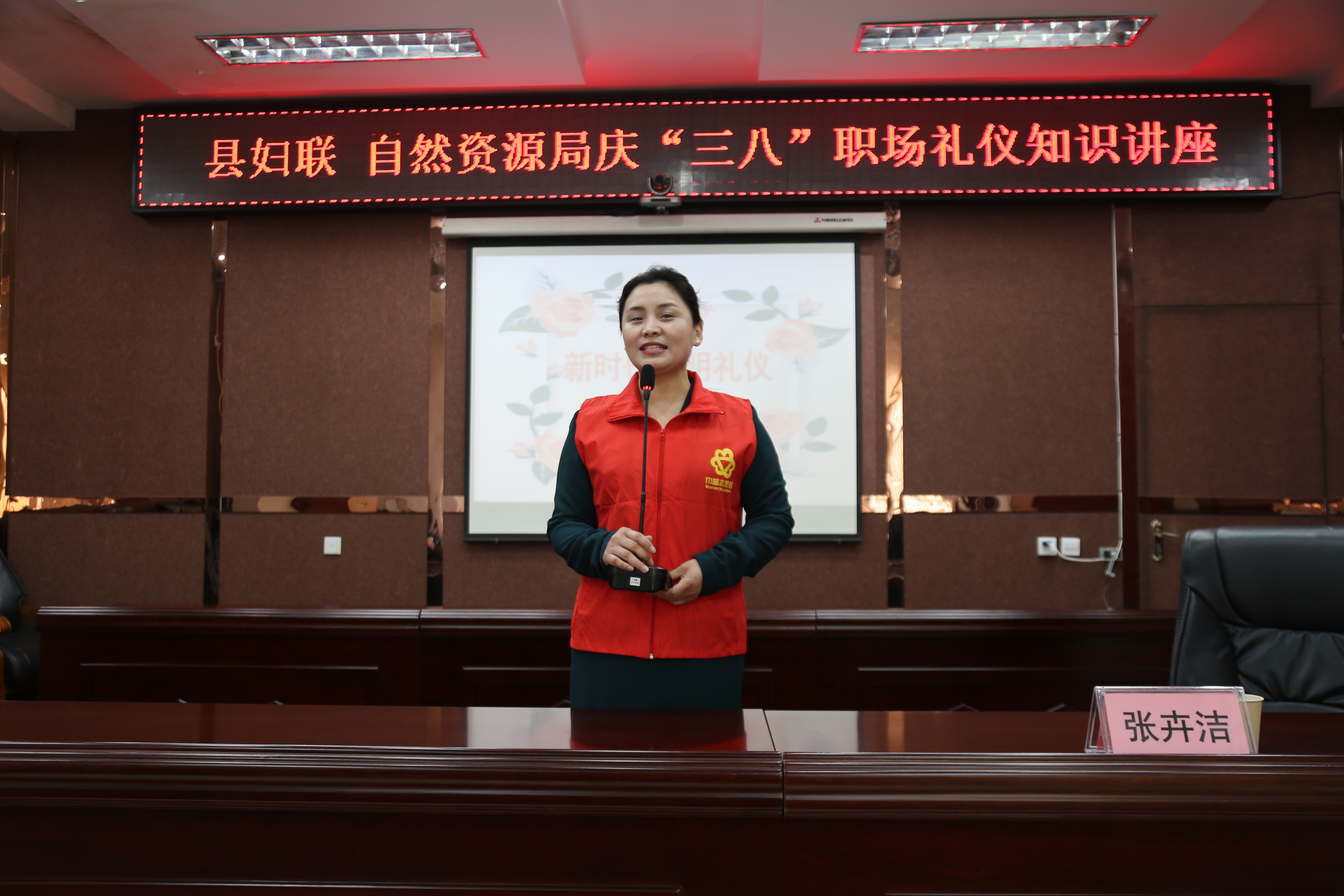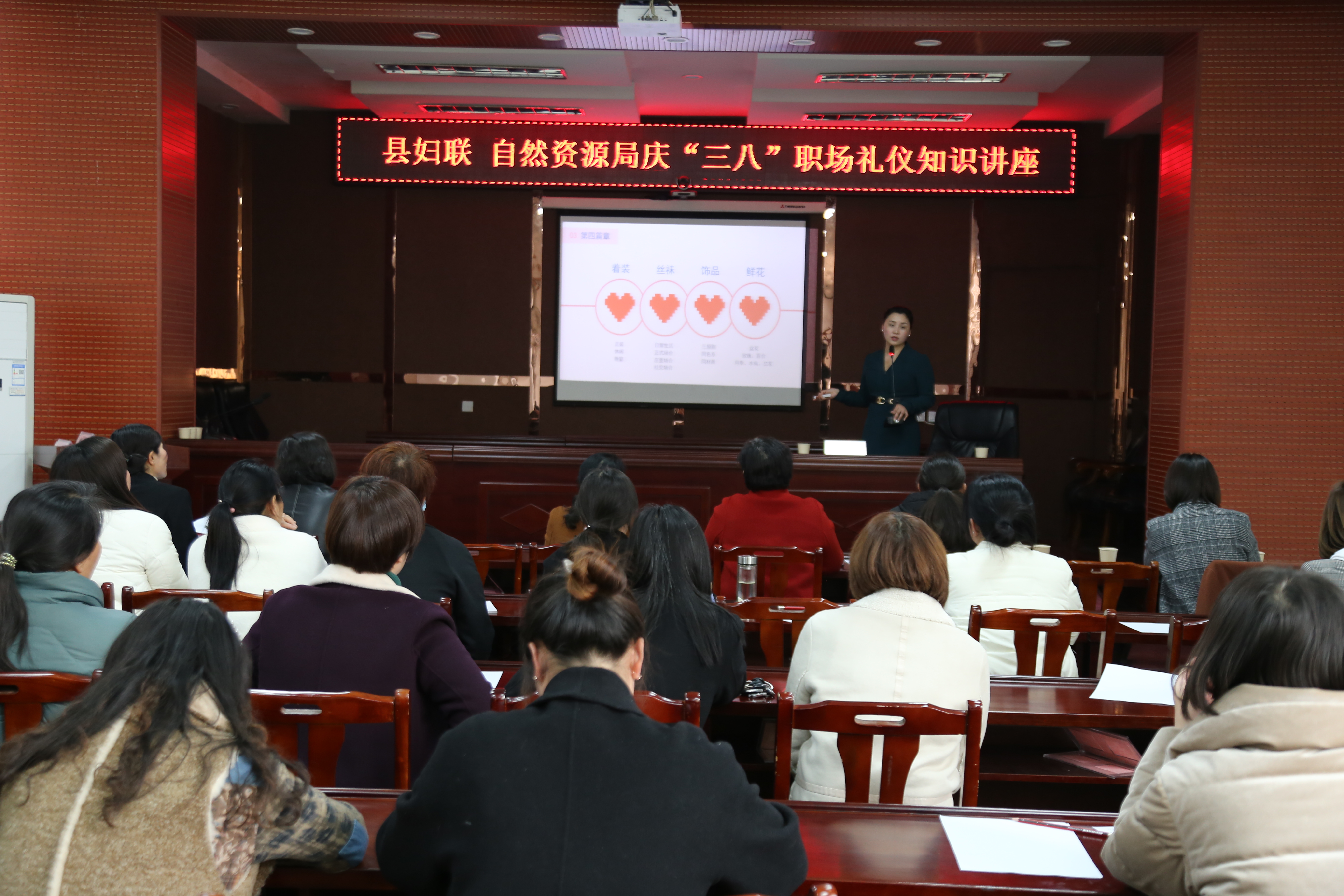 在“三八”節(jié)來臨之際,為自然資源系統(tǒng)女干部“知禮儀、守禮節(jié)”,進(jìn)一步豐富職場(chǎng)禮儀知識(shí),提升處理公共關(guān)系的技能,更好地服務(wù)大局、服務(wù)自然資源發(fā)展,3月5日,鄲城縣自然資源局舉辦慶“三八”職場(chǎng)禮儀知識(shí)講座,邀請(qǐng)中國(guó)青年創(chuàng)業(yè)導(dǎo)師、河南省先鋒國(guó)學(xué)文化研究院副院長(zhǎng)張卉潔講授禮儀知識(shí),自然資源局班子成員和局直各單位的100余名女干部職工參加,縣婦聯(lián)副主席趙彩花出席講座。