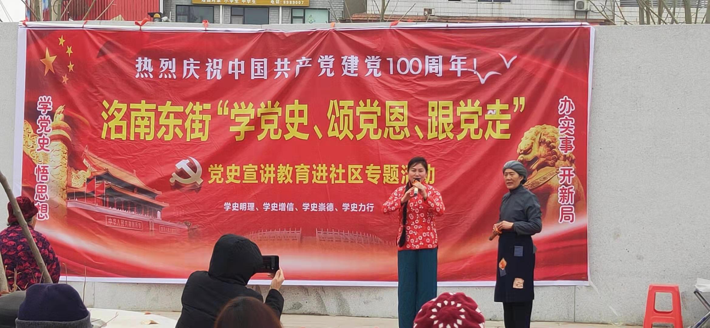 “黨史宣講教育活動,將黨史與豫劇相融合,通過戲曲的表現(xiàn)形式,深入淺出地向居民群眾描繪黨的艱辛歷程,通過重溫紅色經(jīng)典,銘記黨的奮斗歷程,弘揚(yáng)黨的優(yōu)良傳統(tǒng),傳承紅色基因,激發(fā)愛國主義熱情,讓居民群眾在戲曲里上了一堂印象深刻的黨課?!睕衬辖值傈h工委書記張杰說。