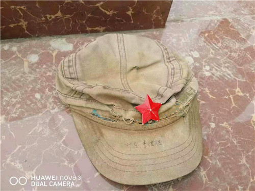 記者注意到這頂帆布材質(zhì)的軍帽已非常破舊,頭頂和帽沿位置都有大大小小的破洞,透過斑駁泛黃的布料,仿佛能讓人看到時(shí)光的年輪,讓人的思緒不禁帶回到那血與火的戰(zhàn)場(chǎng),中間那顆鮮紅的五角星,使這頂帽子有了靈魂,時(shí)至今日,它依然鮮紅。