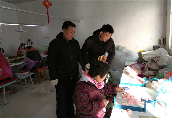 王東華了解到,本村在外務(wù)工人員多在南方從事羊毛衫加工,具有人才和技術(shù)優(yōu)勢(shì)。他鼓勵(lì)村黨支部書記黨紅濤在本村原有零星服飾加工的基礎(chǔ)上,整合資源成立輝祥服飾有限公司,擴(kuò)大生產(chǎn)規(guī)模,帶動(dòng)大家致富。他還同黨紅濤一起外出考察購(gòu)置新型縫盤機(jī),聘請(qǐng)杭州服飾設(shè)計(jì)公司做技術(shù)和銷售顧問,對(duì)接銷路。由于加工羊毛衫縫盤機(jī)占用空間不大、機(jī)器輕便,公司實(shí)行“公司+農(nóng)戶”模式,讓貧困群眾在家進(jìn)行初加工,然后送到廠房進(jìn)行拼裝,計(jì)件付酬,僅此一項(xiàng)就帶動(dòng)50余名貧困群眾就業(yè),人均月收入4000元以上。按照這個(gè)模式,董村又辦起玩具加工廠等企業(yè)。他還和村“兩委”班子通過整理閑置土地,對(duì)外承包,增加村集體收入25萬(wàn)余元。