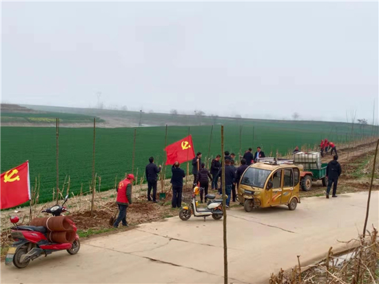 3月12日上午,在址坊鎮(zhèn)黨委政府的統(tǒng)一安排部署下,該鎮(zhèn)組織22個黨員志愿者服務(wù)隊,肩扛黨旗,佩戴黨徽,奔赴各植樹現(xiàn)場,開展全鎮(zhèn)集中植樹活動。鎮(zhèn)黨委書記潘厚君帶領(lǐng)鎮(zhèn)政府機關(guān)黨員志愿者,到該鎮(zhèn)東瓦屋趙行政村植樹點集中植樹。