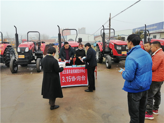 3月15日,沈丘縣農(nóng)業(yè)機(jī)械技術(shù)中心在沈丘縣惠農(nóng)農(nóng)業(yè)裝備有限公司組織開展2021年全國“農(nóng)機(jī)3.15”消費(fèi)者權(quán)益日活動(dòng)。