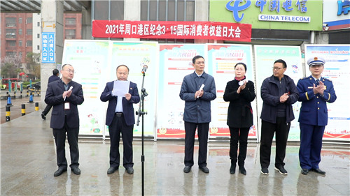 市市場監(jiān)管局二級高級主辦趙學軍,港區(qū)黨委委員、紀委書記李素芹出席活動。港區(qū)榮獲2020年度周口市“文明誠信經營示范商戶”代表,港直相關單位、李埠口鄉(xiāng)政府負責人,港區(qū)醫(yī)院等企業(yè)組織方隊,市市場監(jiān)管局港區(qū)分局全體同志,周口日報社等新聞單位以及前來參觀的消費者們參加了紀念大會。活動大會上,港區(qū)分局副局長趙珂回顧總結了2020年全區(qū)消費者權益保護工作,對2021年“3.15”活動期間的消費維權工作作了安排?! ?/p>