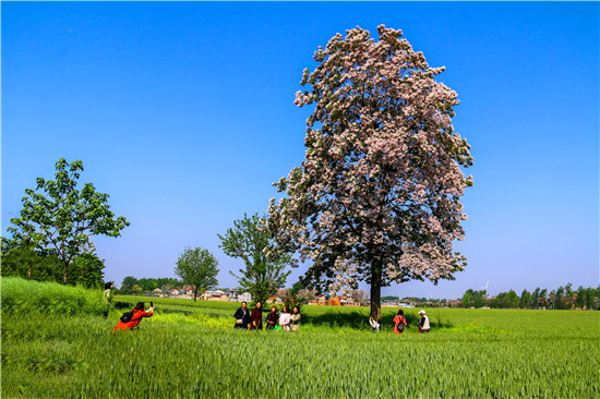 殊榮的背后是高集人持續(xù)的艱辛創(chuàng)綠史,也得益于高集人完善的四級管護(hù)機(jī)制。近年來,高集鄉(xiāng)林業(yè)生產(chǎn)以打造楸樹之鄉(xiāng)為載體,以完善林網(wǎng)、路網(wǎng)、河網(wǎng)為重點,大力發(fā)展楸樹苗圃,建設(shè)森林鄉(xiāng)村,打造“楸樹之鄉(xiāng)”。探索出“鄉(xiāng)村兩級政府+公司+農(nóng)戶”的四級管護(hù)機(jī)制(鄉(xiāng)政府干部和鄉(xiāng)直機(jī)關(guān)干部分包路段管護(hù)、行政村組織人員統(tǒng)一管護(hù),澆水、公司聘用護(hù)林員專業(yè)管護(hù),定期集中巡邏,統(tǒng)一防蟲治病、農(nóng)戶義務(wù)管護(hù)防止農(nóng)田作業(yè)時傷樹毀林),破解林業(yè)綠化難題。經(jīng)過五年的不懈努力,轄區(qū)138條道路兩側(cè),14條河溝兩岸,累計栽種楸樹36萬多棵,全鄉(xiāng)種植楸樹面積已達(dá)15000多畝、楸樹苗200萬株,覆蓋了全鄉(xiāng)23個行政村,88個自然村,楸樹不僅成了高集鄉(xiāng)的景觀風(fēng)景樹,還成為高集人的“綠色銀行”。