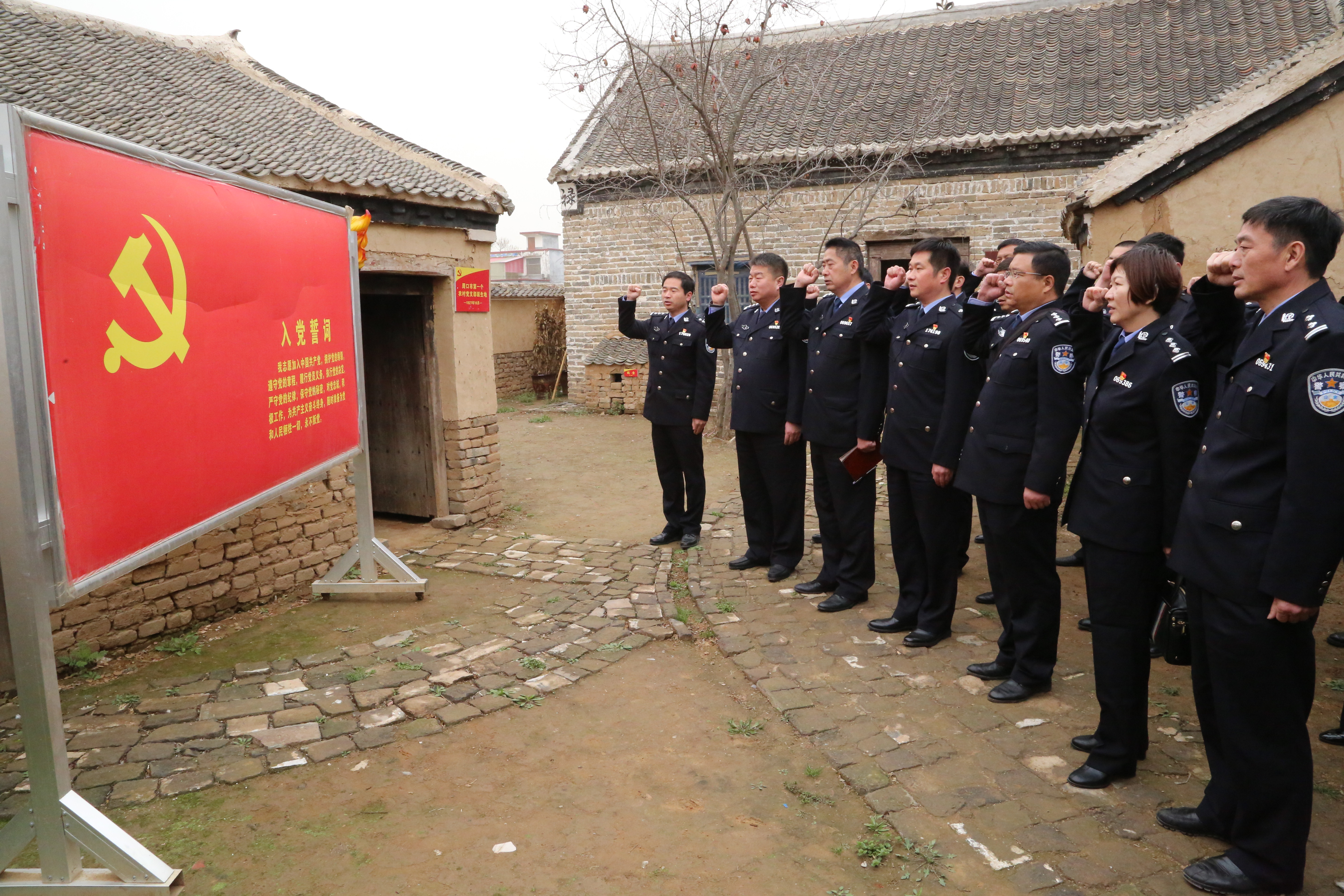 與此同時(shí),在崗張村支部舊址門前,面對(duì)莊嚴(yán)的黨旗和警旗,該縣公安局政辦室主任邱亞龍帶領(lǐng)全體黨員民警莊嚴(yán)地高舉右拳,重溫了入黨、入警誓詞。