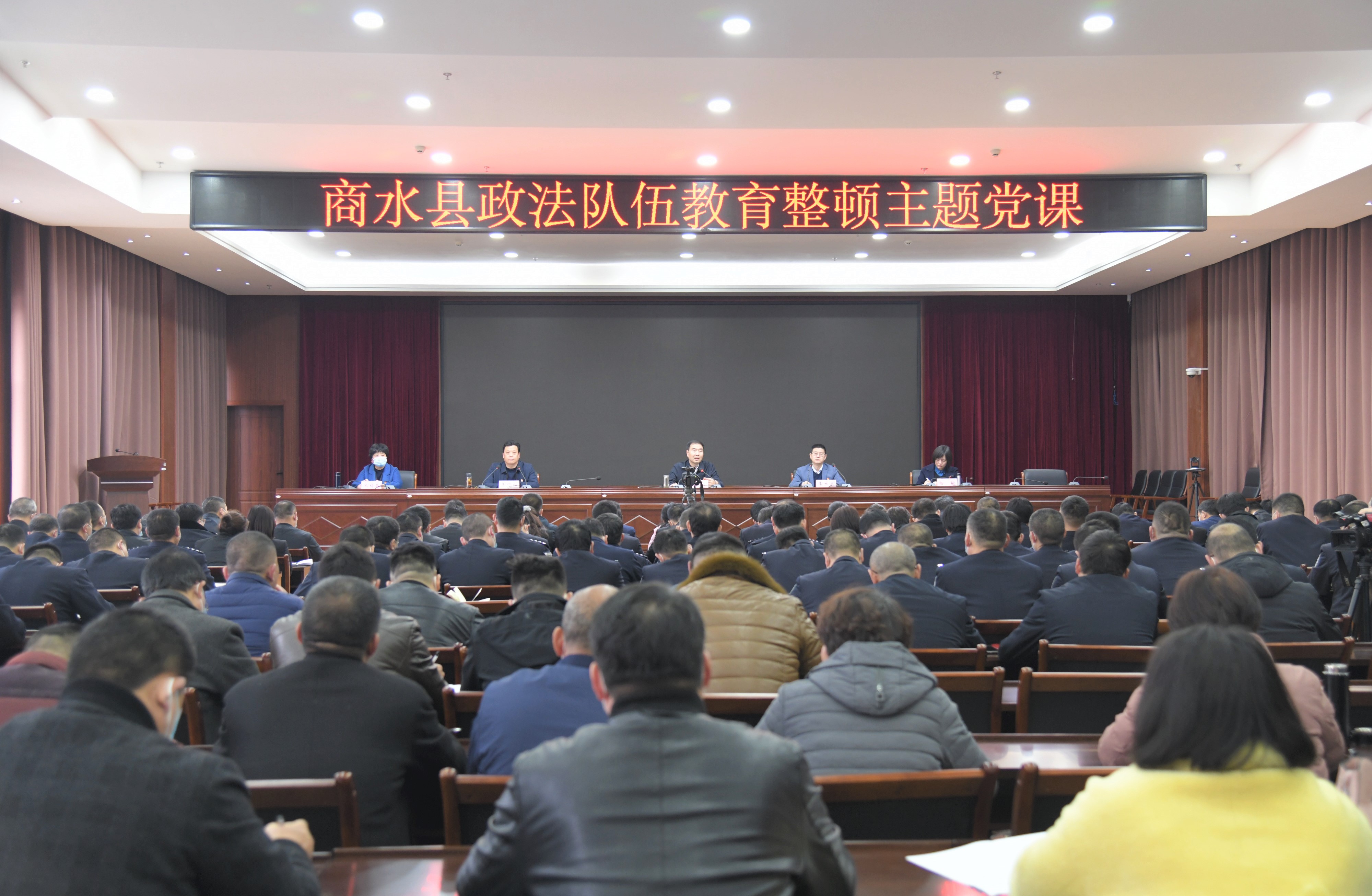 3月19日下午,商水縣舉辦政法隊(duì)伍教育整頓主題黨課活動,縣委書記、縣政法隊(duì)伍教育整頓領(lǐng)導(dǎo)小組組長孔陽為全縣政法隊(duì)伍上黨課??h委常委、宣傳部長李本磊,縣委常委、紀(jì)委書記、監(jiān)委主任王中紅,縣委常委、組織部長楊敏,縣法院黨組書記、代院長齊梅英和全縣政法隊(duì)伍教育整頓領(lǐng)導(dǎo)小組成員、縣委政法委全體人員,縣法院、縣檢察院、縣公安局、縣司法局中層以上干部一起聆聽黨課。
