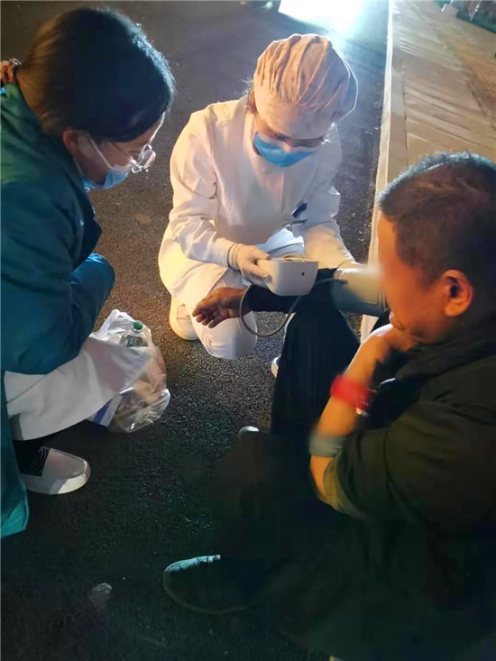 考慮到王先生如果不能得到及時的緊急救治情況將十分危急,焦急的她們開始沿途尋找,同時想盡辦法與患者王先生的家人及所有可能知道王先生位置的人聯(lián)系。終于在患者手機沒電、無法接通電話的情況下,成功在縣城的一處路邊找到患者做緊急處理措施,并將患者安全遷移到科內(nèi)治療。