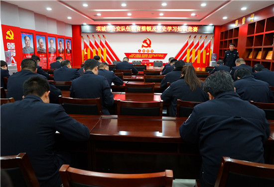為進一步提升民警政治理論水平,切實加強隊伍教育整頓學習教育環(huán)節(jié)各項工作,結(jié)合當前實際情況,3月18日下午,項城市公安局精心組織開展隊伍教育整頓理論及學黨史知識競賽。局屬50余個單位各派民警代表參加了比賽,現(xiàn)場采取閉卷考試的方式進行。