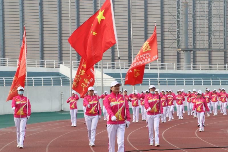 浩浩蕩蕩的拉練隊(duì)伍分成七大方陣,三列縱隊(duì)繞著體育館出發(fā)。上清湖健步隊(duì)、閆溝河健步隊(duì)、蒲公英健步隊(duì)、王皮溜健步隊(duì)、渦北健步隊(duì)、東城健步隊(duì)隊(duì)列整齊高呼口號(hào)繞場(chǎng)一周。500余人迎著朝陽(yáng),邁著堅(jiān)定有力的步伐,意氣風(fēng)發(fā)地踏上拉練的征程。