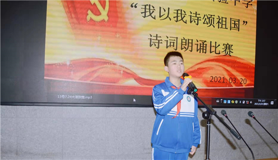 “我是你掛著眼淚的笑渦/我是新刷出的雪白的起跑線/是緋紅的黎明/正在噴薄/——祖國(guó)??!”一句句飽含深情的朗誦,一陣陣熱情如潮的掌聲。3月20日下午,鄲城縣第二實(shí)驗(yàn)中學(xué)“我以我詩(shī)頌祖國(guó)”學(xué)生愛(ài)國(guó)詩(shī)詞朗誦比賽熱烈舉行。