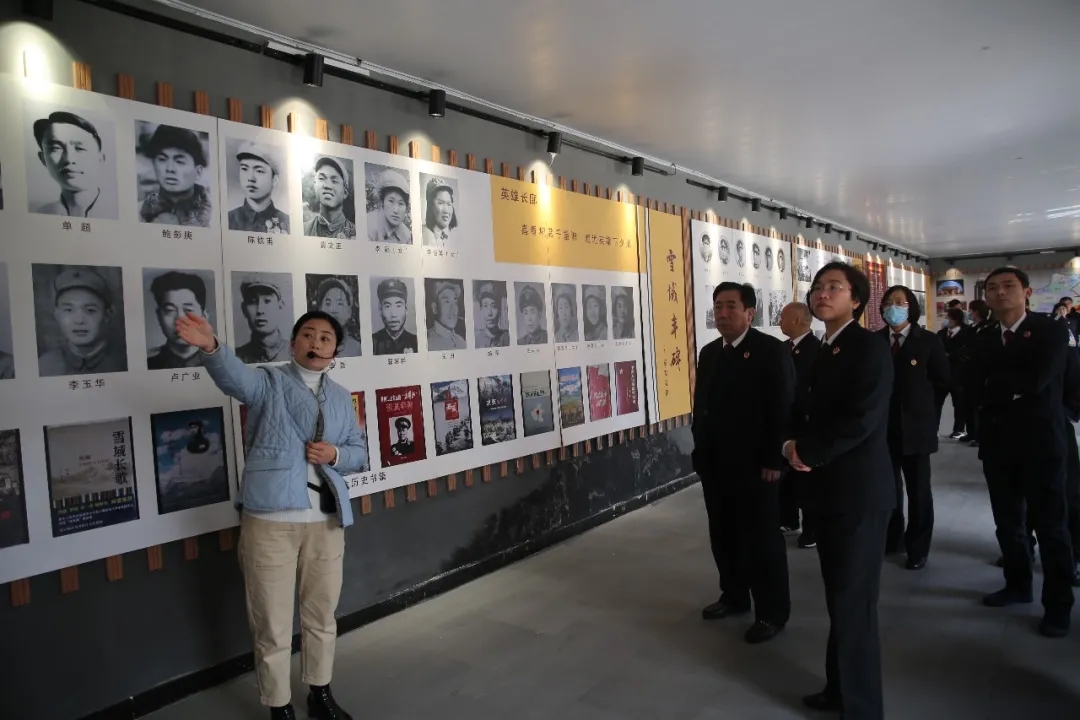 隨后,干警們來到了姜鴻起烈士紀(jì)念館,館內(nèi)保存著百位烈士故交、家鄉(xiāng)鄰里和戰(zhàn)友、同事的訪談?dòng)涗?,?dāng)代百位將校軍官和社會(huì)知名人士為紀(jì)念館題詞、作詩、作畫、撰文等。講解員的生動(dòng)講解,把干警們帶回了當(dāng)年那狼煙四起、硝煙彌漫的戰(zhàn)爭(zhēng)年代。戰(zhàn)爭(zhēng)雖已過去,但我們不能忘記犧牲的英魂,正是無數(shù)像姜鴻起一樣的革命烈士的身軀鋪就了新中國誕生的道路,用無數(shù)鮮血詮釋了新中國的來之不易。